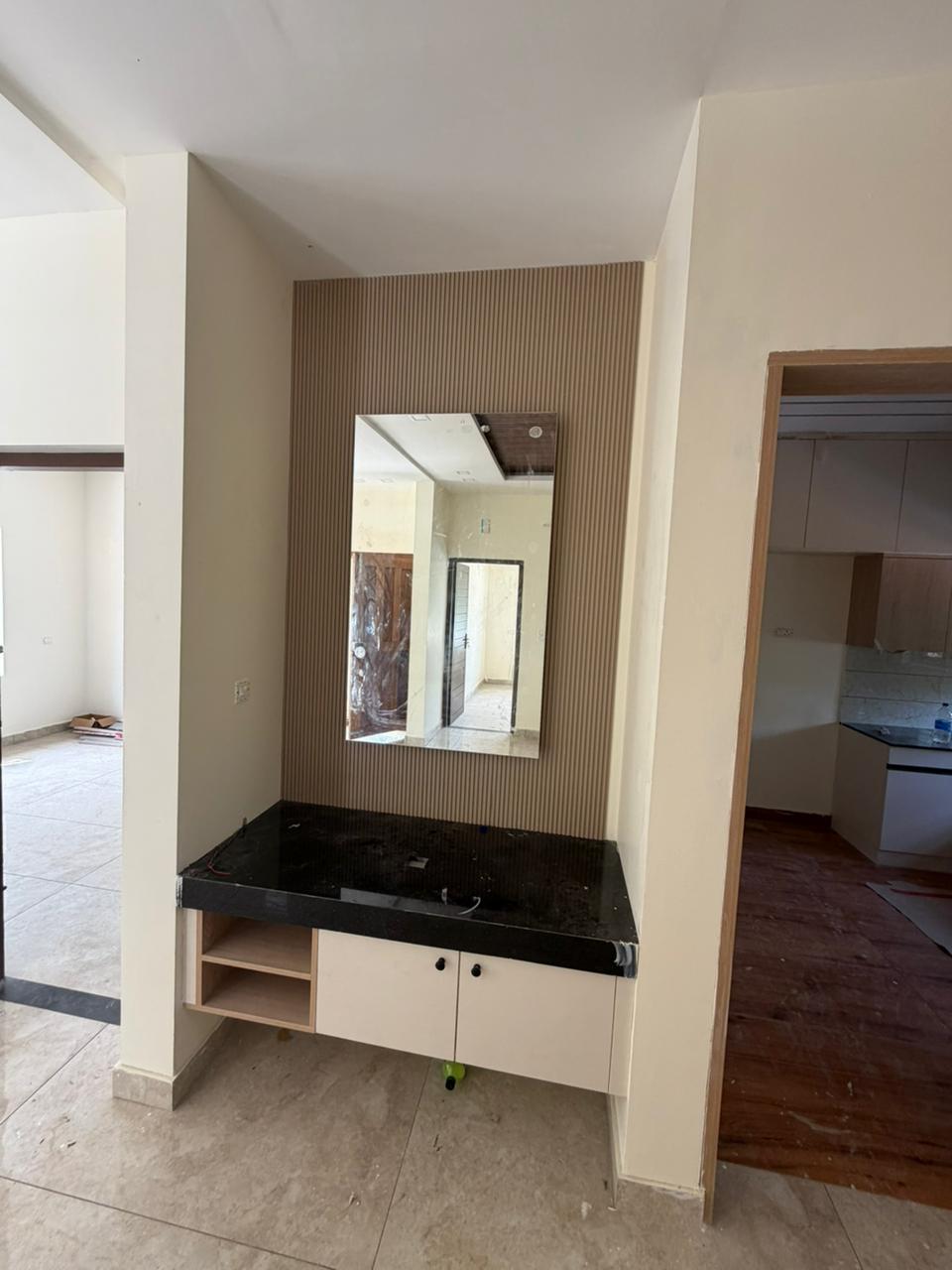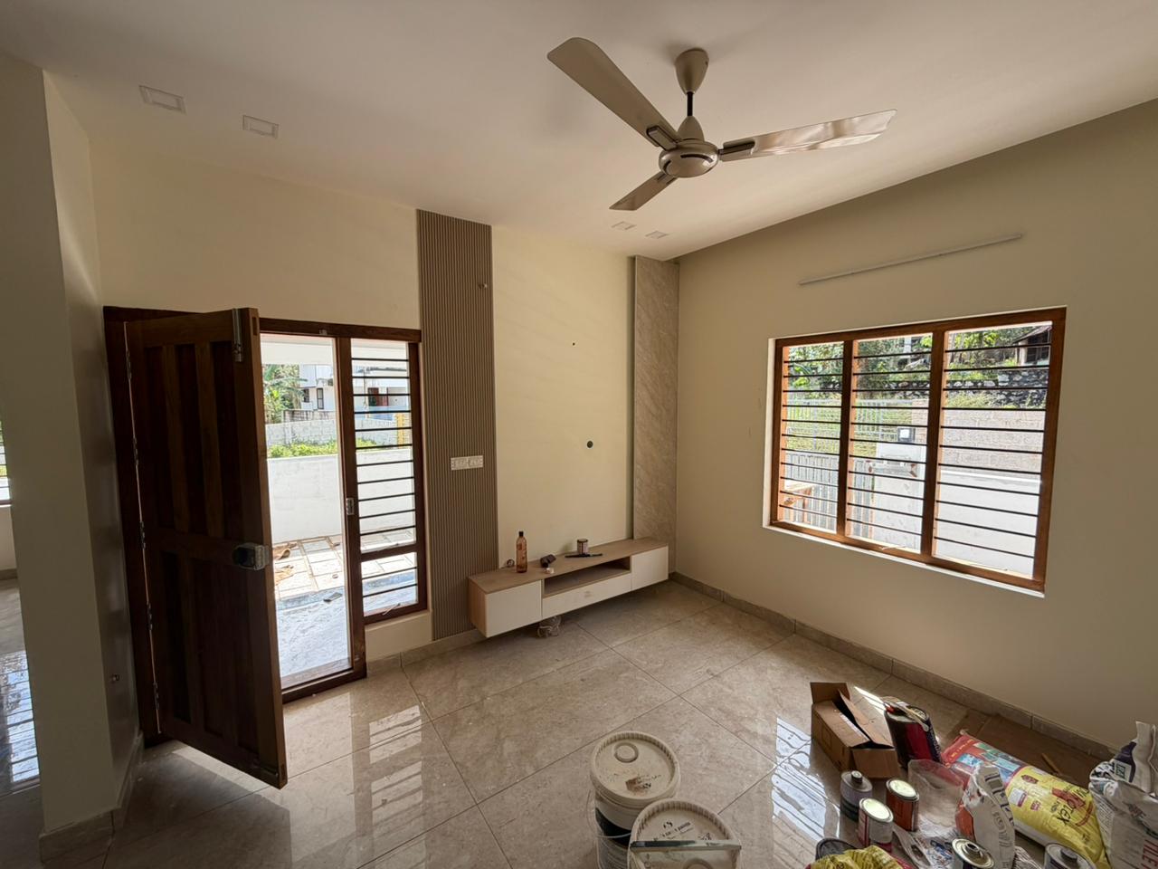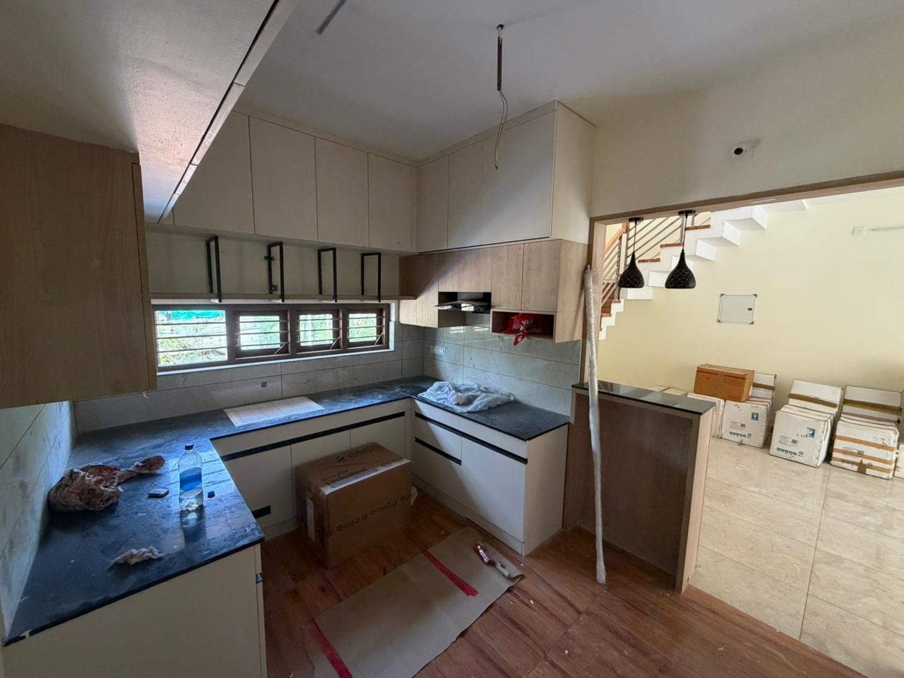The interior works are done by an established Interior firm and the materials used are best in quality. I used 710 grade plywood WallMark, WPC SchaleWood, Hinges HettichThe Sanitywares are of Jaquar brand and purchased from Tara Sanitary shop, Pattom.